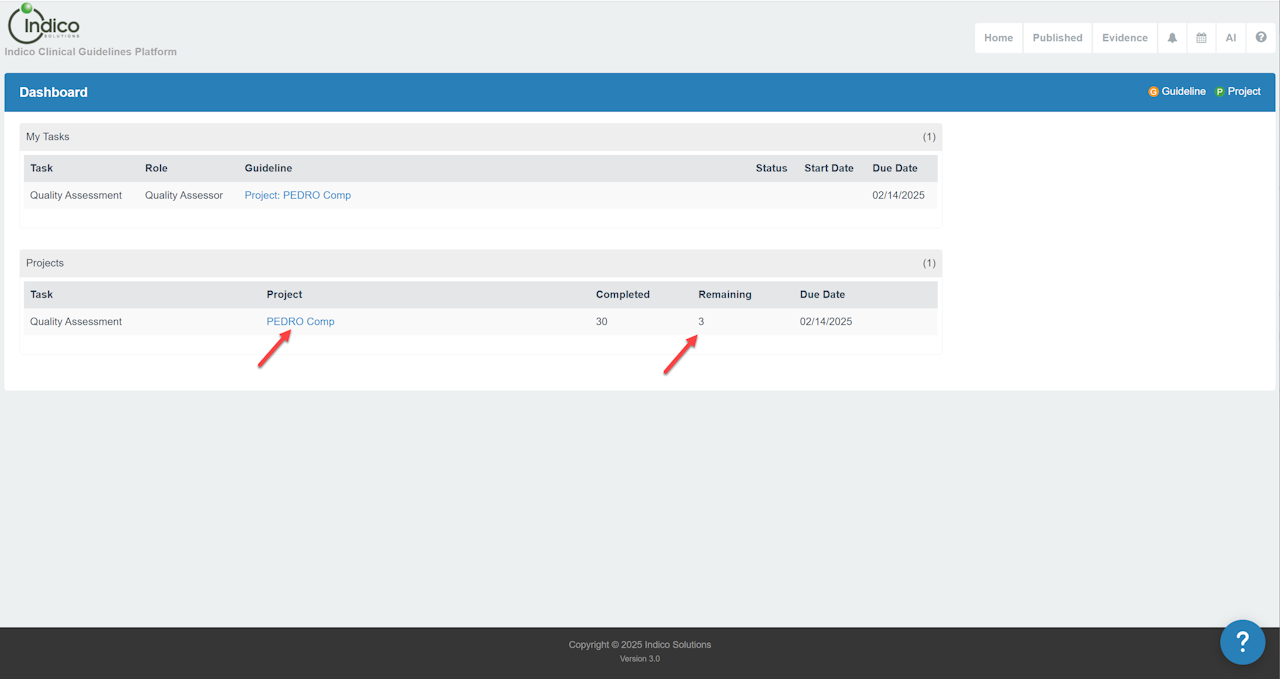 Systematic reviews includes Critical Appraisal to assess the quality of potentially included publications. Indico now has an AI interface that allows a draft AI assessment of PEDro and AMSTAR tools for RCT and Systematic Reviews. Unlike AI Data Extraction score domains are not pre-filled, the human assessors are responsible for actual scoring.