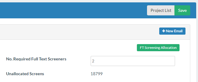 Enter the number of Full Text Screeners you require for each publication in the field in the top right section of the screening tab